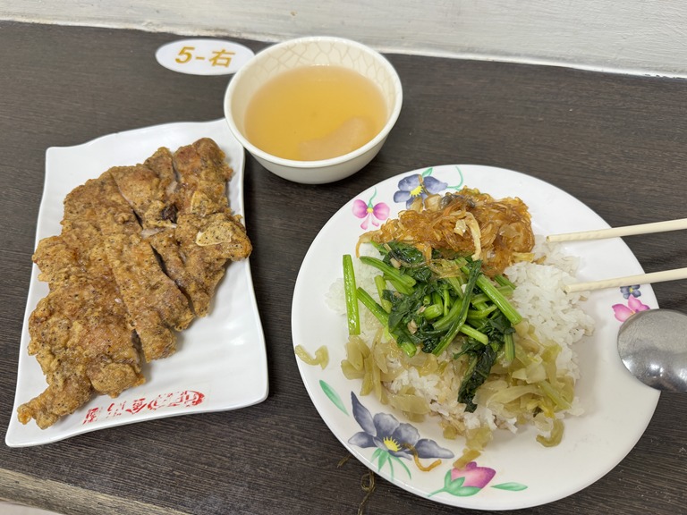 Unser Mittagessen nahmen wir in einer der unzähligen kleinen Garküchen mitten in der Stadt ein. Bei der “Restaurantauswahl” gilt stets: Ist vor dem Eingang eine Menschenschlange, ist das Essen gut! Also warteten wir kurz, und bekamen dann (in meinem Fall) köstliches “Minced Pork” mit Reis serviert (für etwa 80 Cent).