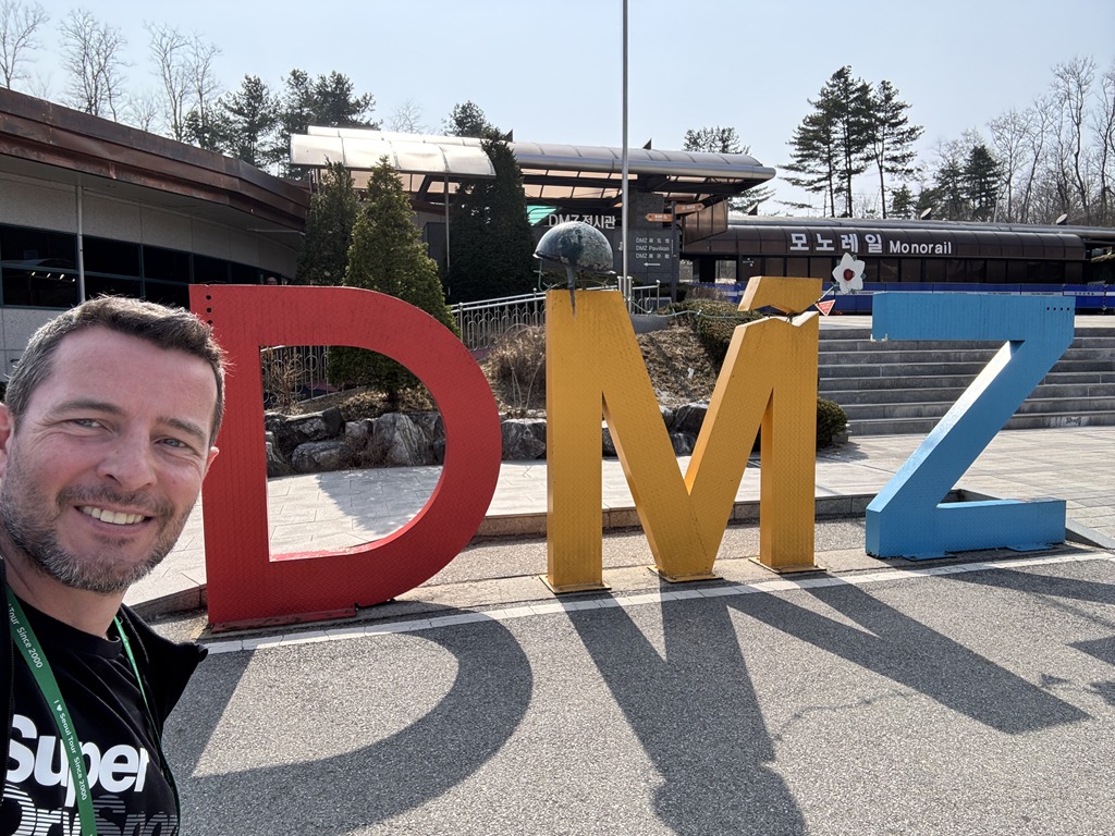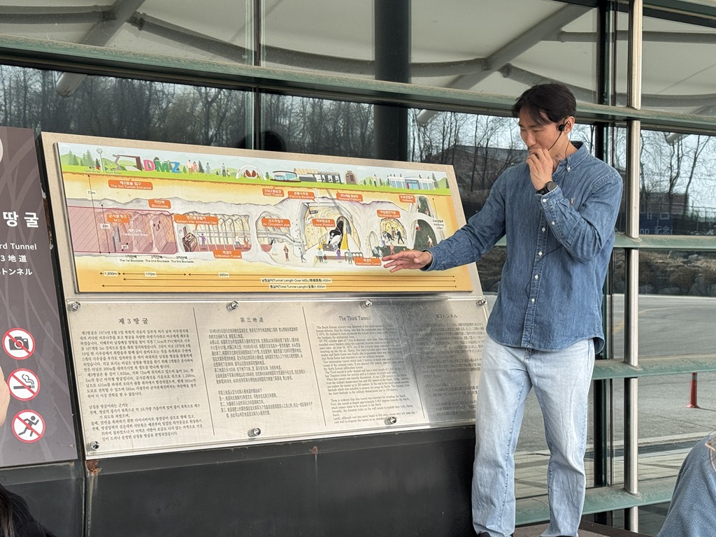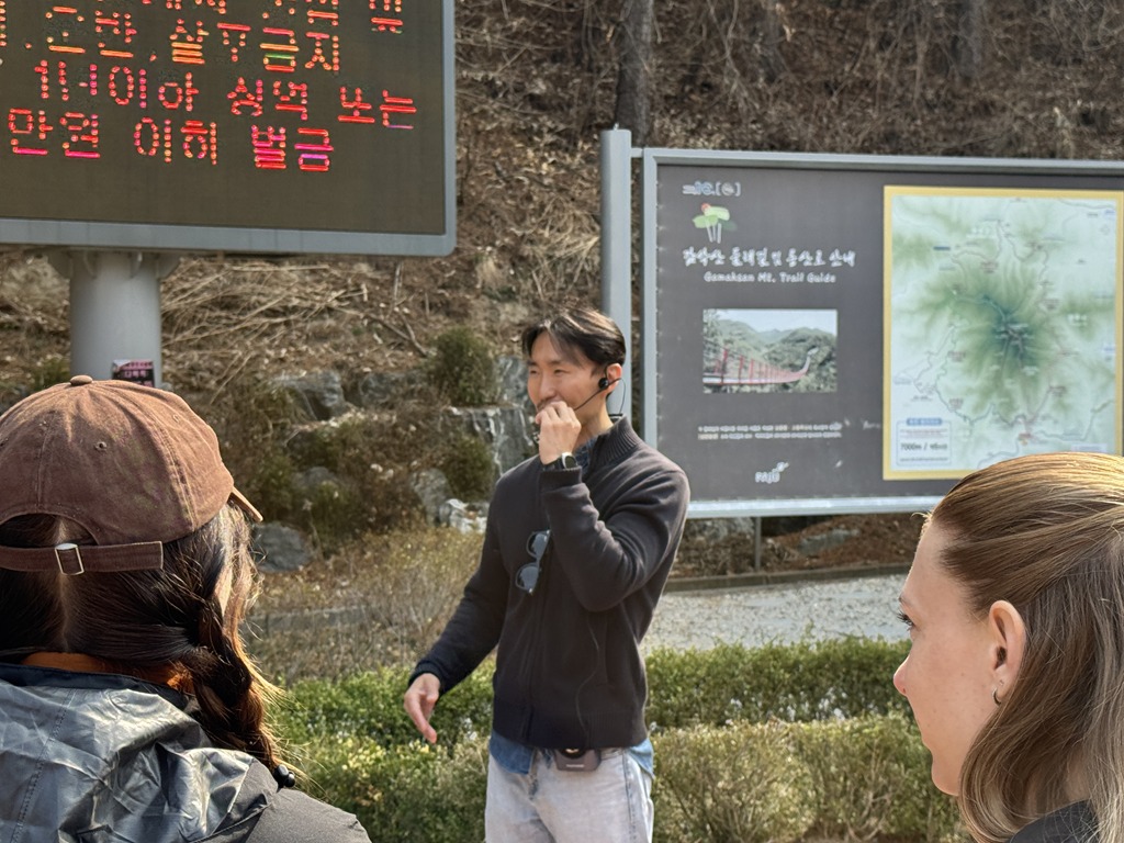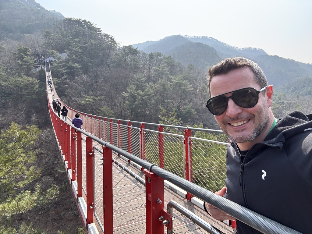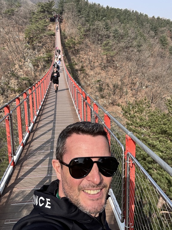 Kurz vor der DMZ stoppten wir für eine kleine Wanderung zur “Gamaksam-Hängebrücke”. Unser Guide Kenny (Bild links) erklärte wirklich sehr viel, und alles sehr verständlich und nachvollziehbar.