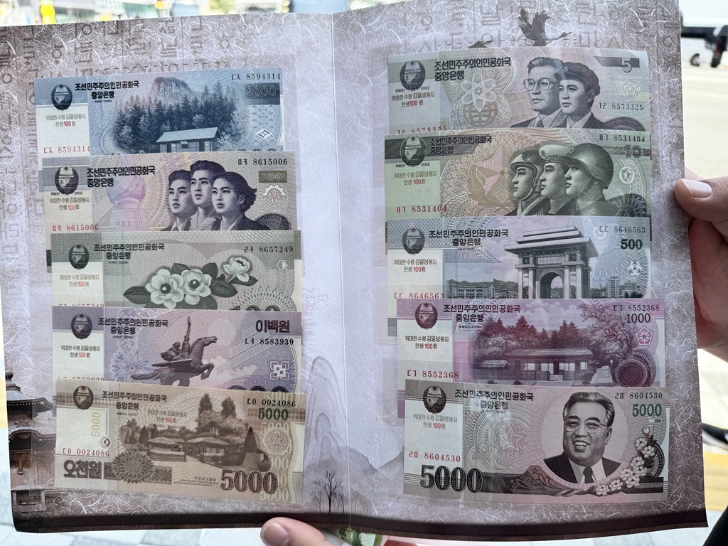 In einem kleinen Häuschen konnte man sogar original nordkoreanische Geldscheine kaufen. Ein netter Holländer hat sie mir für ein Foto zur Verfügung gestellt.